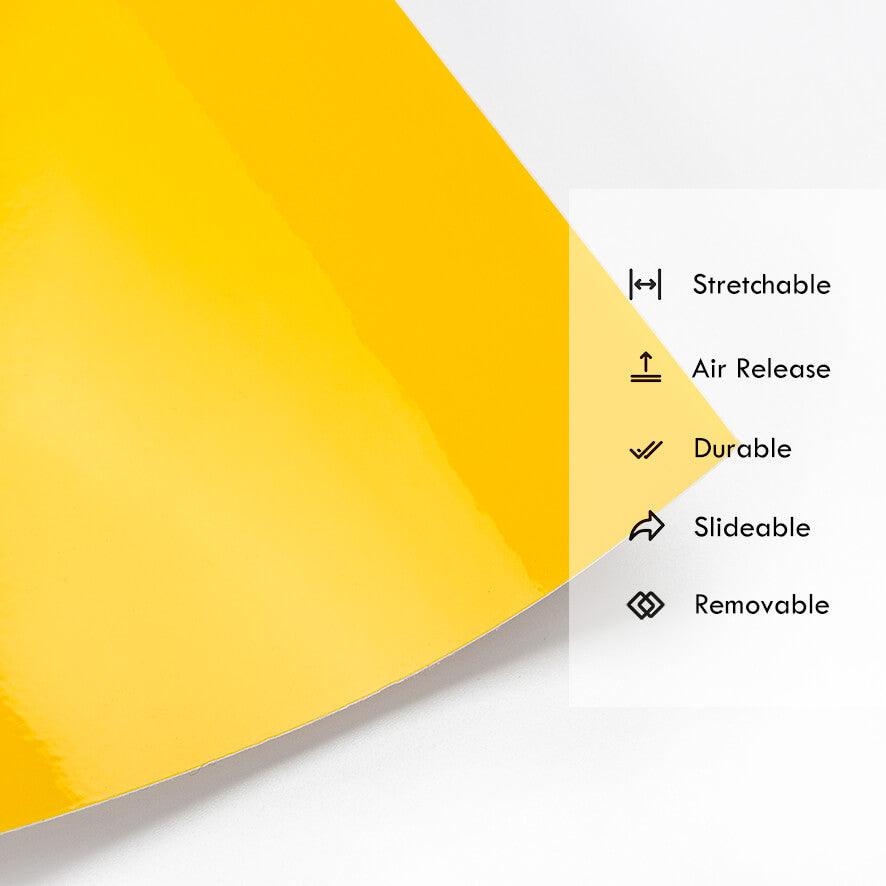 The glossy yellow car wrap gives your vehicle a radiant look with superior depth and clarity. Unlike matte or satin finishes, the gloss crystal surface reflects light evenly, producing a liquid-like shine.